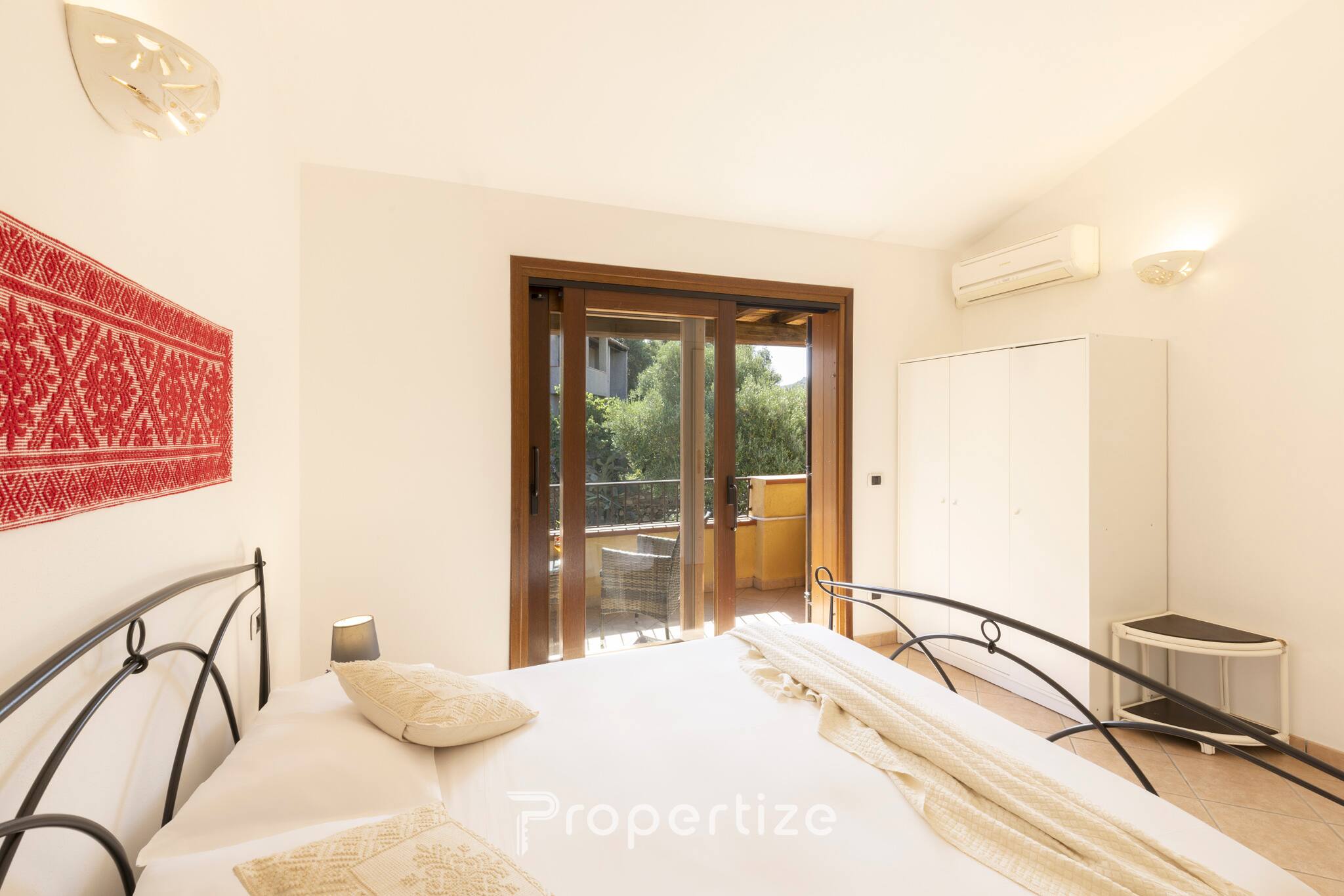 Chambres : une chambre double avec balcon privé et une deuxième chambre avec un lit simple (et un lit escamotable), idéales pour les familles et les couples.