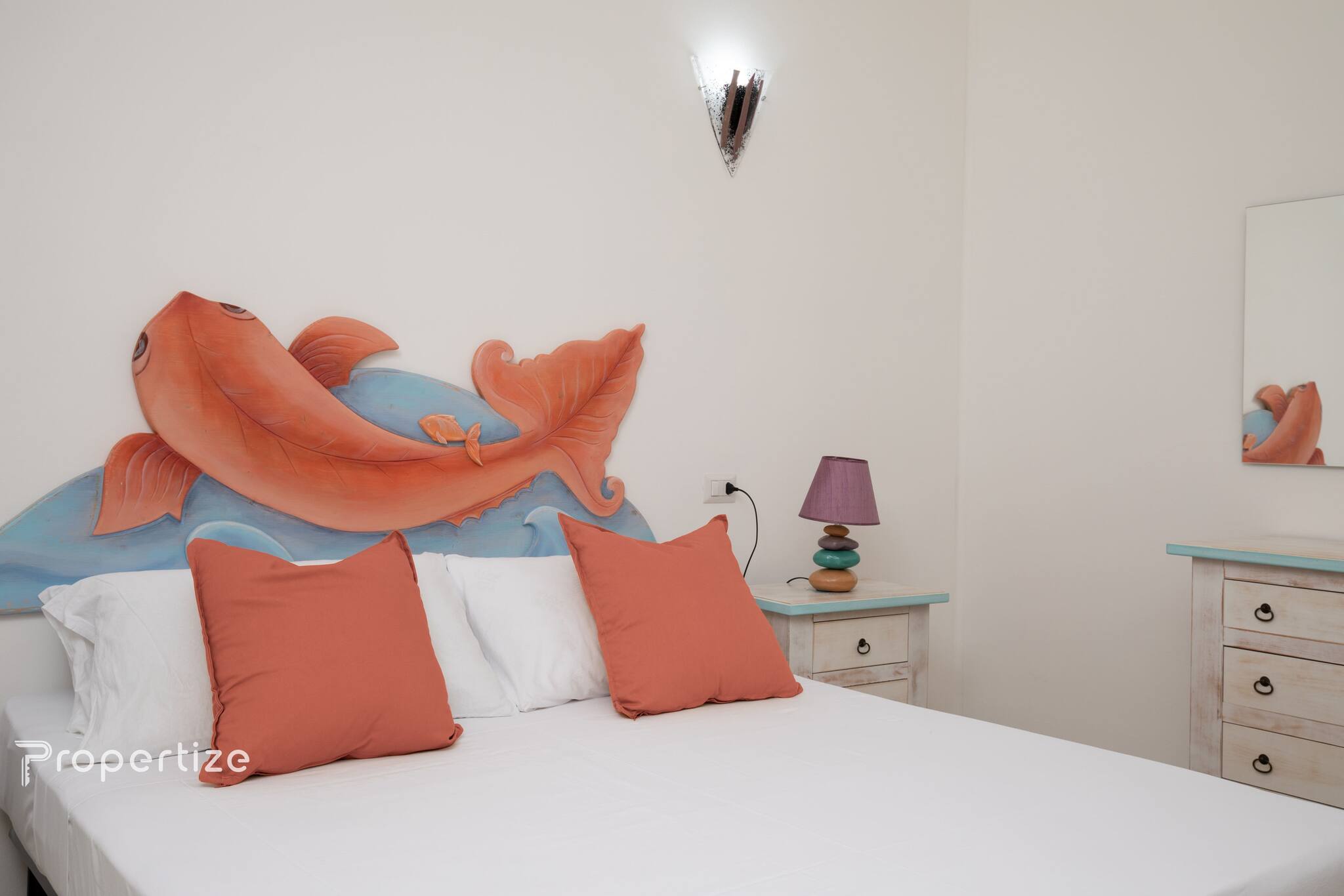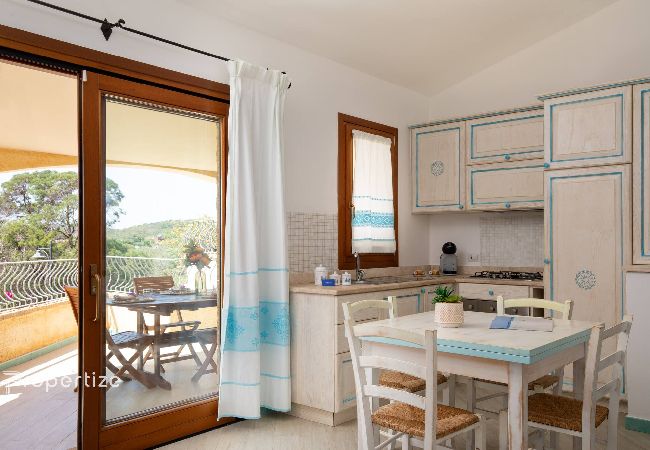 Profitez du meilleur de la Sardaigne du Nord-Est dans cette maison à Pittulongu, à seulement 100 mètres de la plage. Parfaite pour les familles, c'est un logement sur deux niveaux soigné dans les détails, avec un style maritime élégant et une atmosphère relaxante, niché dans la végétation.