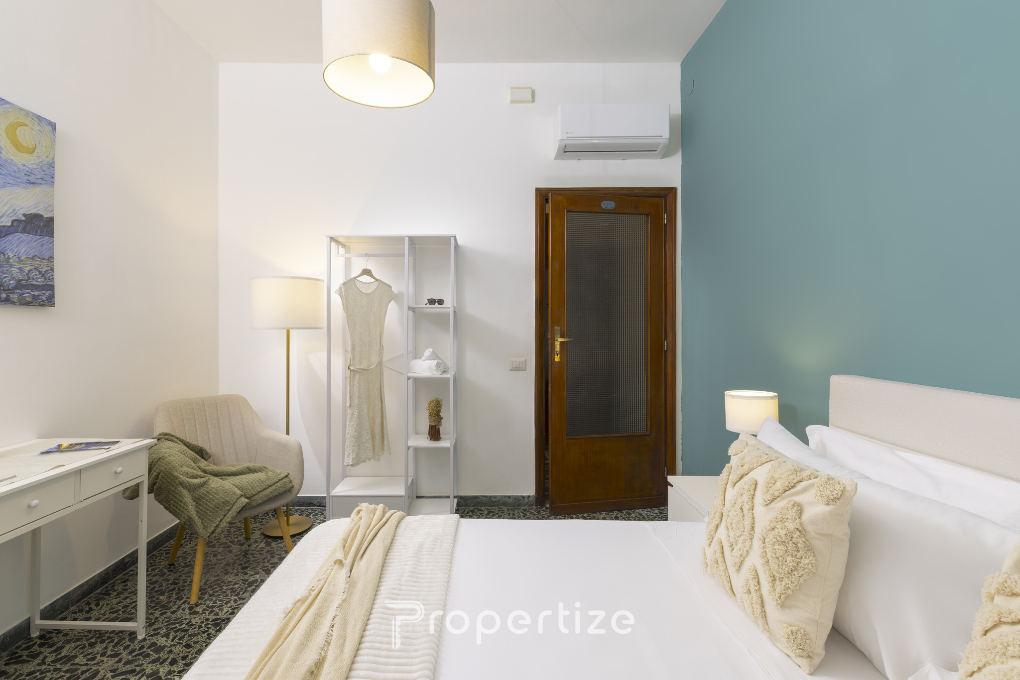 Due camere doppie luminose e climatizzate, con armadi spaziosi e spazi progettati per garantire privacy e comfort.