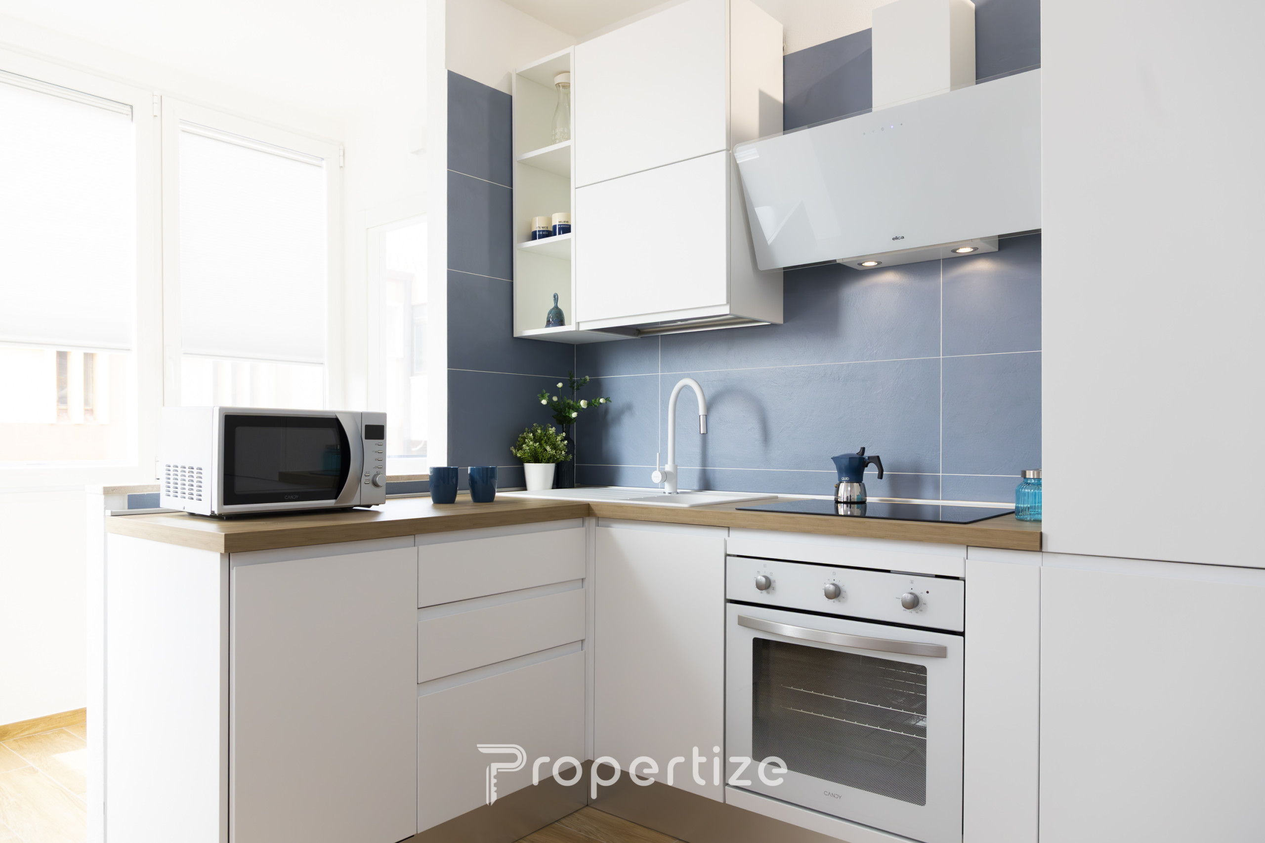 La cucina a induzione è moderna e ben attrezzata, ideale per preparare pasti in totale comodità durante il soggiorno.