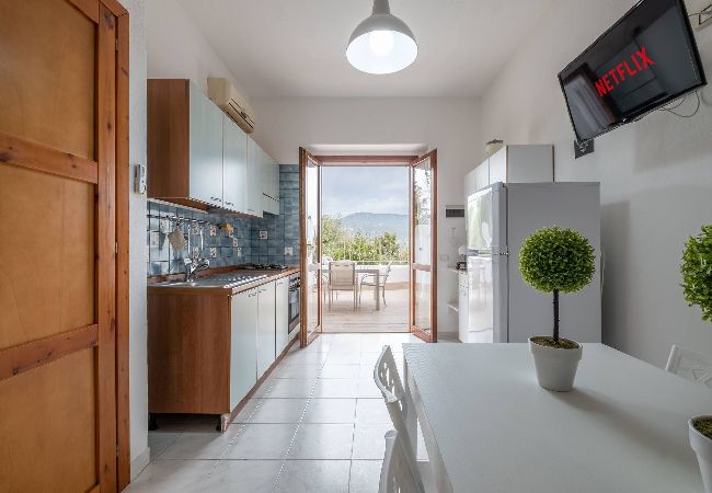 La camera da letto è dotata di un comodo letto matrimoniale e di un ampio armadio. Il soggiorno include un divano letto per due persone, ideale per famiglie. La cucina è completamente attrezzata con tutto il necessario e l'area pranzo è perfetta per godersi i pasti. Il bagno è provvisto di doccia e bidet. Avrai accesso a WiFi gratuito e aria condizionata per mantenerti fresco. La spaziosa terrazza offre un'area pranzo all'aperto con vista panoramica e un barbecue a tua disposizione. La TV smart è disponibile per lo streaming dei tuoi programmi preferiti.