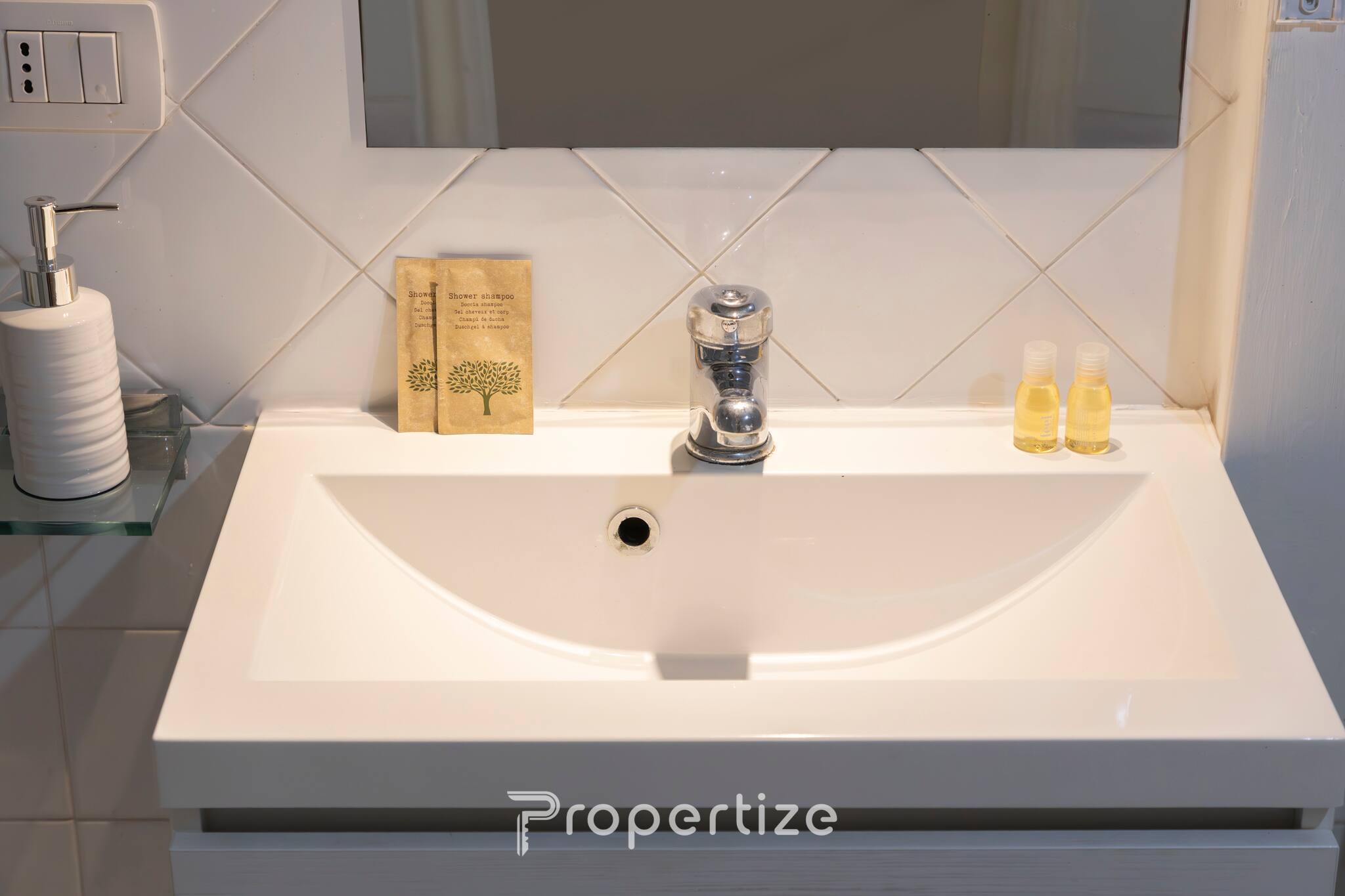 De badkamer is functioneel en voorzien van alle essentiële voorzieningen, waaronder airconditioning en wifi. The White Loft by Propertize is de ideale keuze voor wie Cagliari comfortabel en stijlvol wil verkennen.