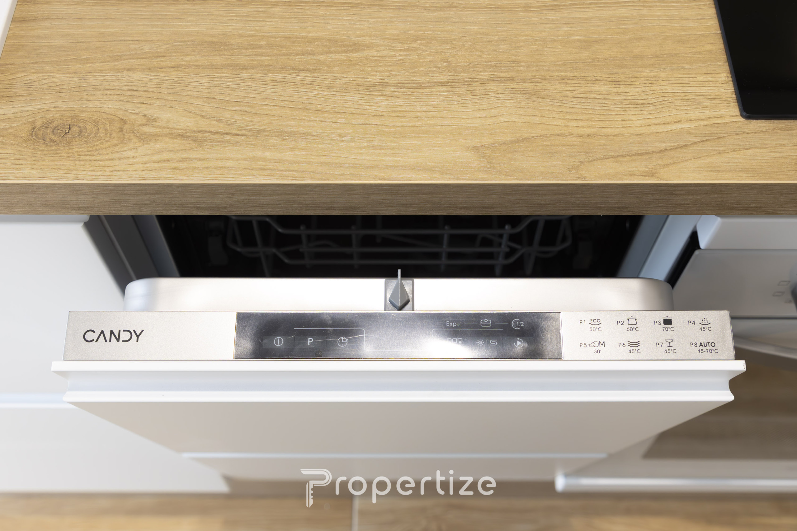Het appartement bevindt zich op de derde verdieping met lift en beschikt over een balkon, airconditioning, Wi-Fi, tv, wasmachine, strijkijzer en haardroger. De inductiekeuken is modern en goed georganiseerd, perfect om ontbijt, lunch of diner volledig zelfstandig te bereiden.