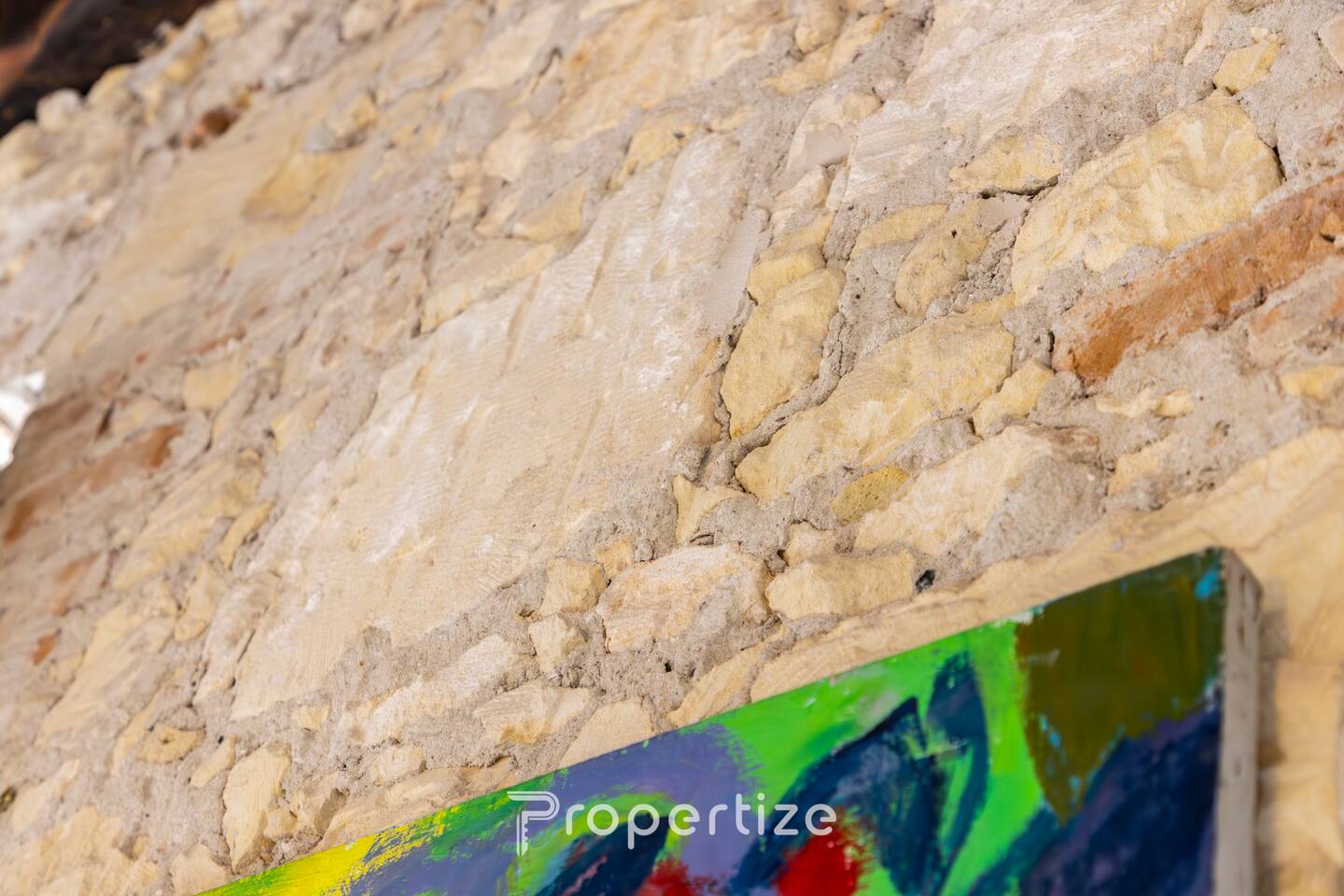 Jasny i przestronny pokój dwuosobowy z klimatyzacją, szafą i widocznymi kamiennymi detalami