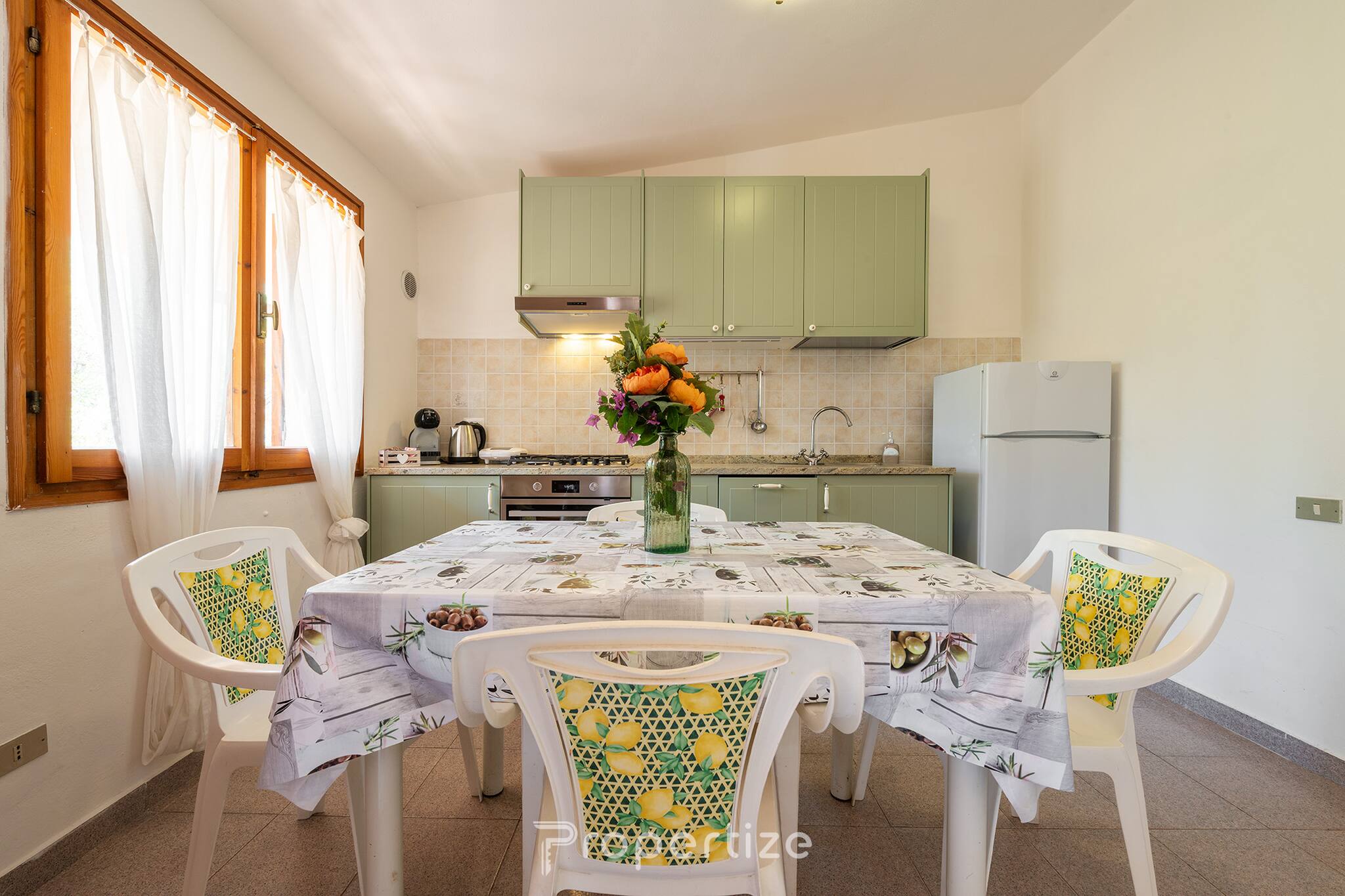 Dom posiada dwie wygodne sypialnie: jedną małżeńską i drugą z dwoma pojedynczymi łóżkami, które można połączyć, obie wyposażone w obszerne szafy i pościel. Salon z inteligentnym telewizorem i dostępem do głównych platform streamingowych jest idealny do relaksu, podczas gdy w pełni wyposażona kuchnia oferuje wszystko, czego potrzeba do przygotowania i wspólnego spożywania posiłków.