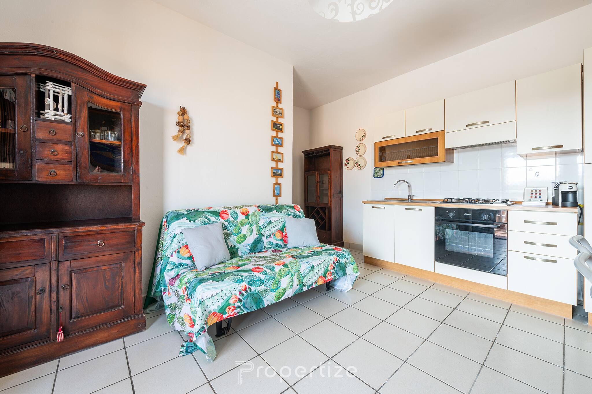 Este encantador apartamento oferece um quarto acolhedor e bem decorado, perfeito para casais ou amigos. A sala de estar inclui um sofá-cama confortável, que pode acomodar um hóspede adicional. A cozinha totalmente equipada está equipada com todos os eletrodomésticos necessários para preparar refeições deliciosas, incluindo uma máquina de café com cápsulas fornecidas. O banheiro é completo com chuveiro, WC e bidé, com um conjunto de cortesia, toalhas e secador de cabelo incluídos para o máximo de conforto.
