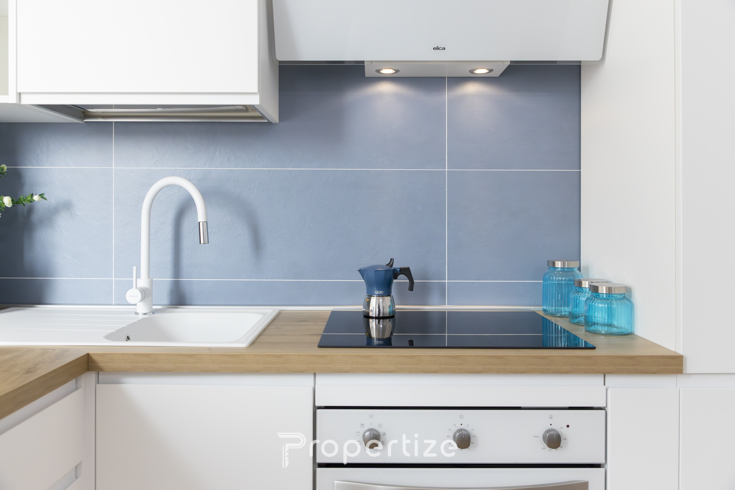 The induction kitchen is modern and well-equipped, ideal for preparing meals in total comfort during the stay.