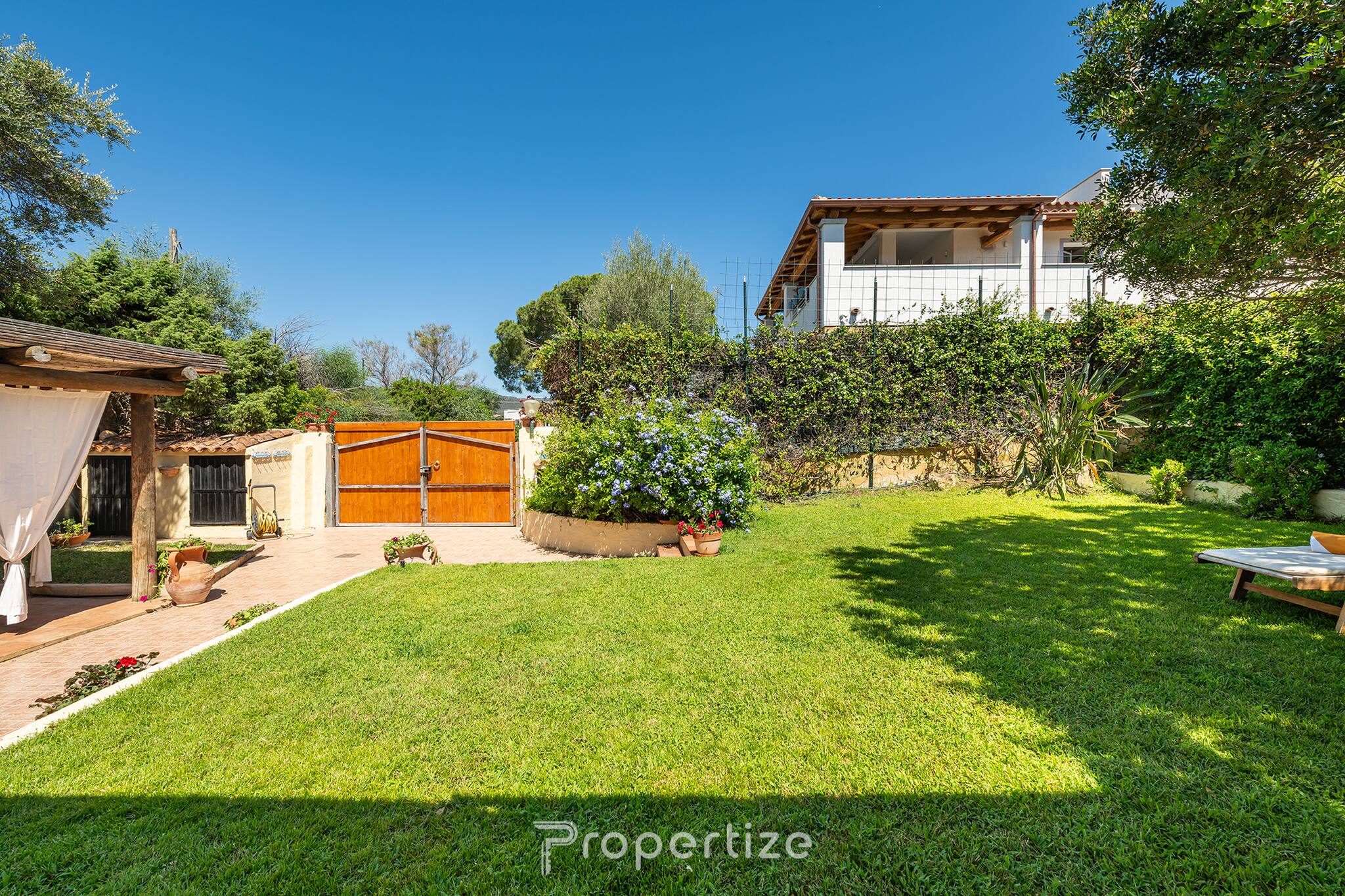 Outside you will find a large well-maintained garden with a solarium, dining area, relaxation zones, barbecue and a suggestive wooden pergola, perfect for outdoor moments. Additionally, a children's play area with a slide and swings is available. Pets are welcome (with a small supplement). The parking is conveniently located right in front of the house.
